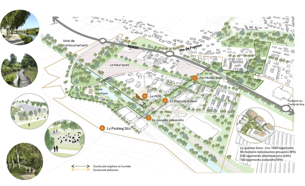Le développement du quartier Gare de cette commune clé du Nord Toulousain est au coeur des enjeux de renouvellement urbain et de structuration des territoires périurbains et de transition dans le cadre de la nouvelle loi Climat et résilience. Les leviers de transformation urbaine autour des nouvelles offres stratégiques des réseaux de transport et de l’optimisation de l’usage des sols induisent une réflexion globale qui lie mobilités, intégration urbaine et paysagère, programmation réaliste et faisabilité économique.