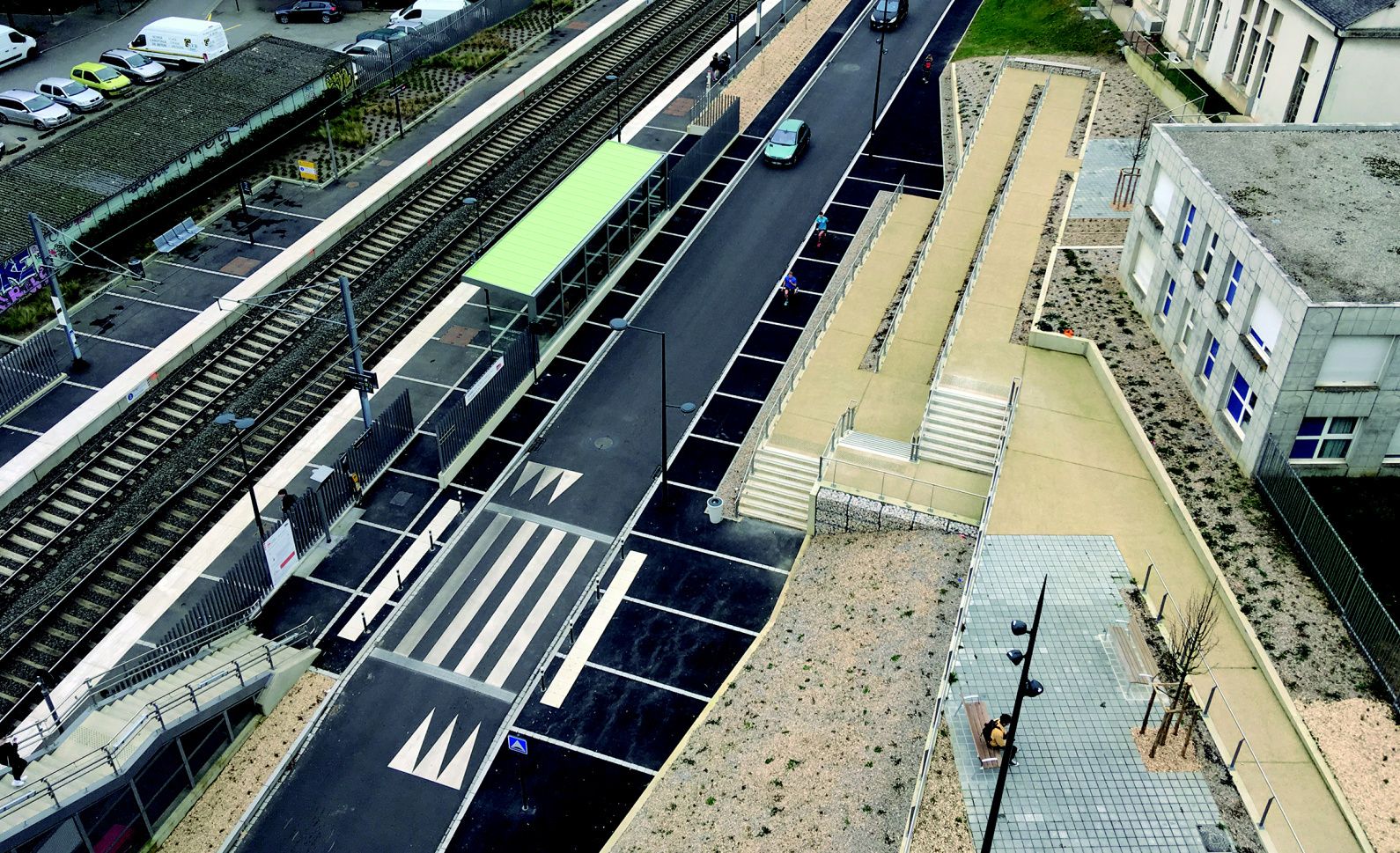 Ce marché de maitrise d’œuvre a pour objectif l’amélioration de l’accessibilité de la Halte dans un contexte d’augmentation du traffic ferroviaire et l’ouverture de l’environnement urbain de manière à créer une meilleure intégration pour les transports en commun. Les aménagements, situés entre l’entrée du CHU de Rennes et la station de métro Anatole France proposent des espaces de pause et de repos en marge des cheminements multimodaux.